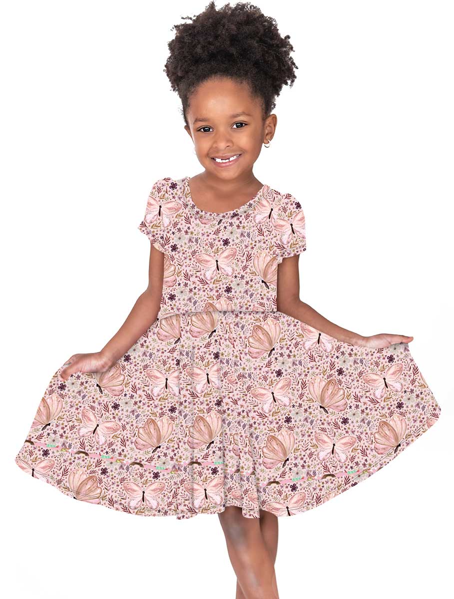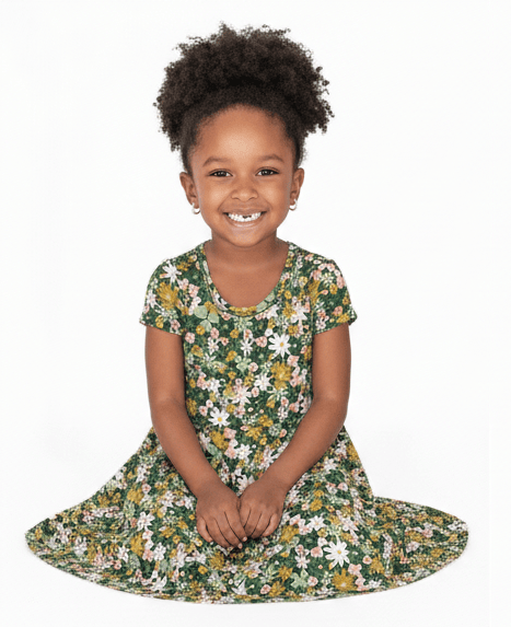 [Pre Sale] Remix Drop Garden Delight - Girls Short Sleeve Bamboo Twirl Dress (EST SHIP LATE DEC)