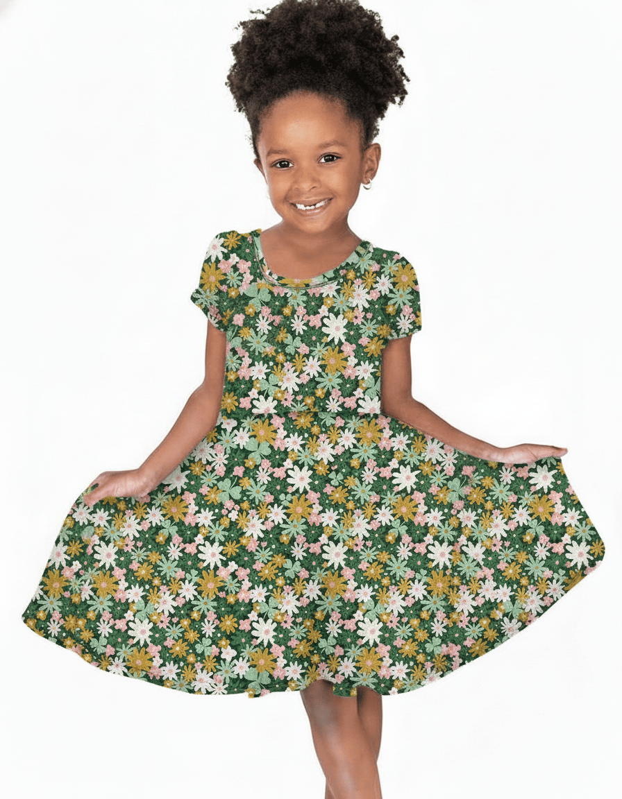 [Pre Sale] Lucky You Clover Garden - Girls Short Sleeve Bamboo Twirl Dress (EST SHIP MID FEB)