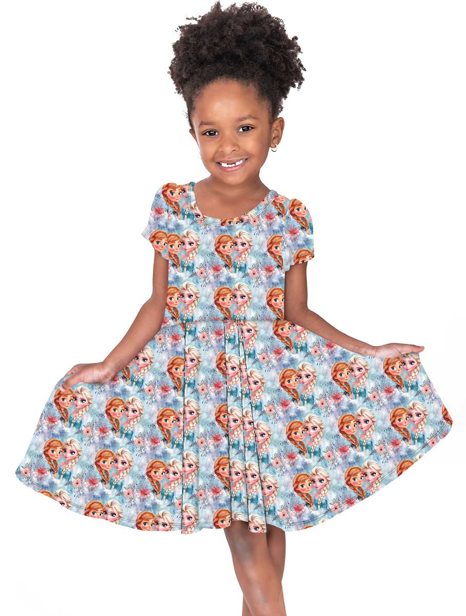 [Pre Sale] Royals & Rebels Frosted Blossoms - Girls Short Sleeve Bamboo Twirl Dress (EST SHIP MID DEC)