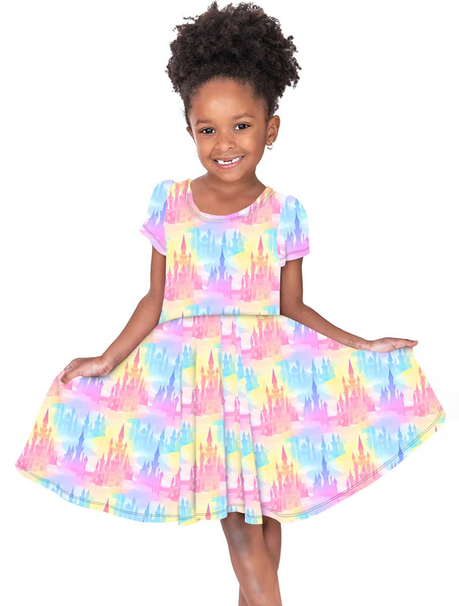 Winter Classics Castles in the Clouds - Girls Short Sleeve Bamboo Twirl Dress