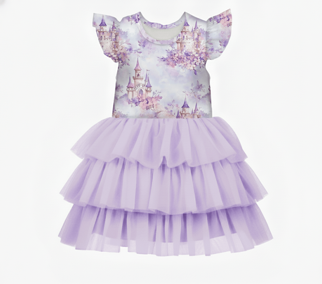 [Pre Order] Dream Big Lilac Kingdom - Girls Flutter Sleeve Bamboo Tiered Tulle Dress (EST SHIP LATE MARCH)