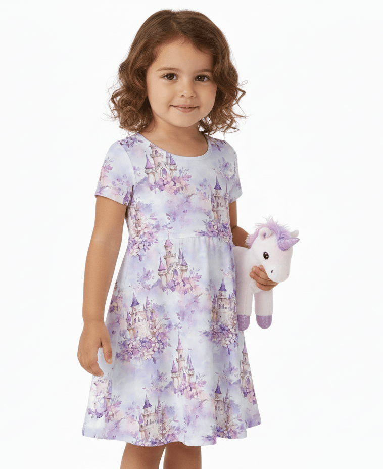 [Pre Order] Dream Big Lilac Kingdom - Girls Short Sleeve Bamboo Twirl Dress (EST SHIP LATE MARCH)