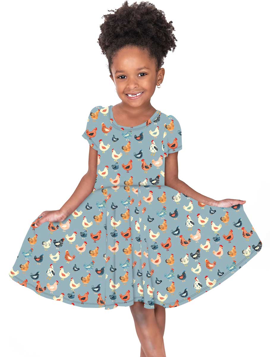 Winter Classics Happy Hens - Girls Short Sleeve Bamboo Twirl Dress