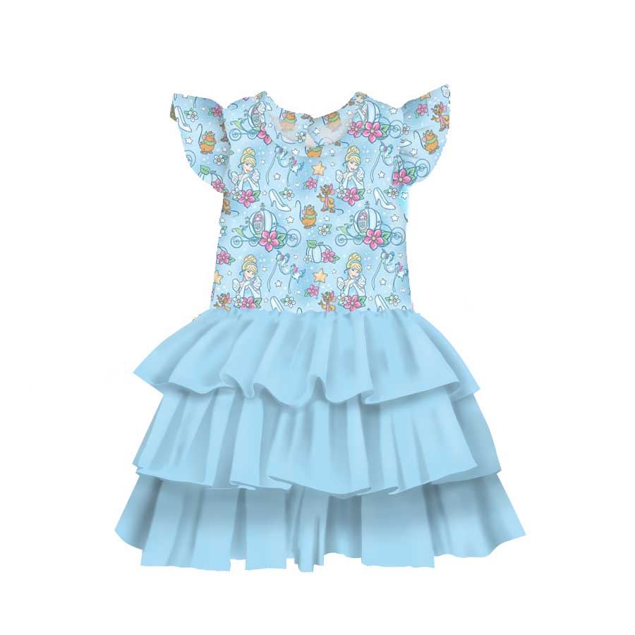[Pre Sale] Remix Drop Glass Slippers - Girls Flutter Sleeve Bamboo Tiered Tulle Dress (EST SHIP LATE DEC)