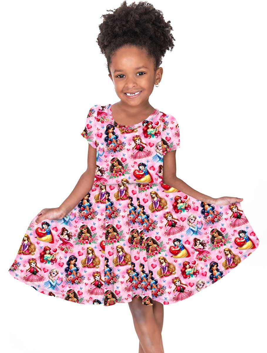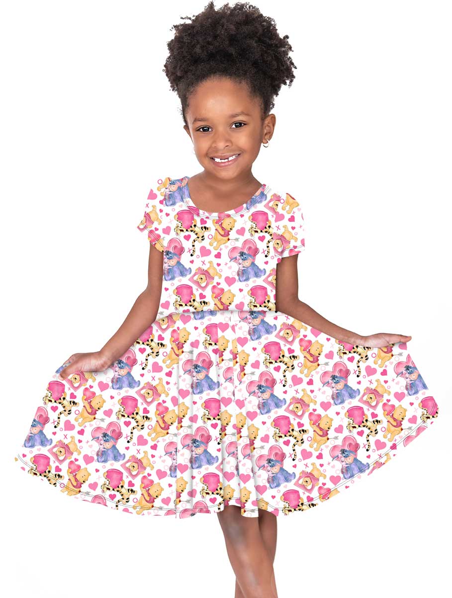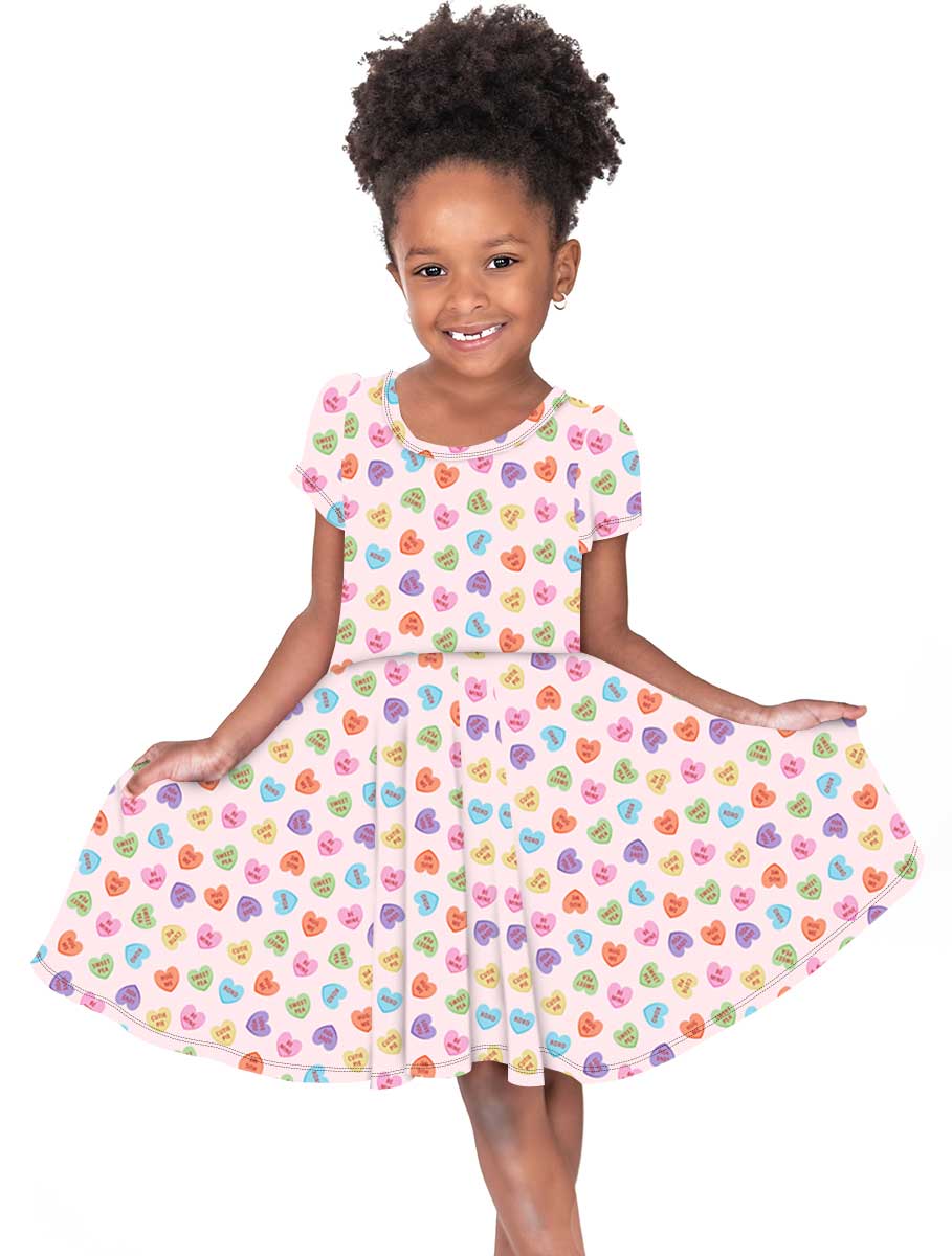 [Pre Sale] Love Bug Candy Hearts - Girls Short Sleeve Bamboo Twirl Dress (EST SHIP MID JAN)
