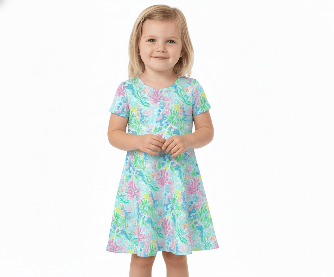 [Pre Order] Dream Big Tropical Tides - Girls Short Sleeve Bamboo Twirl Dress (EST SHIP LATE MARCH)