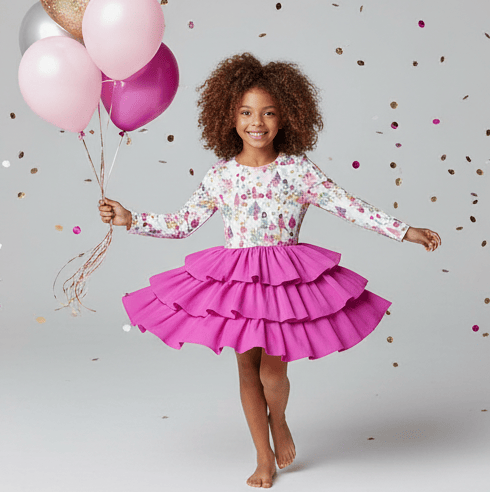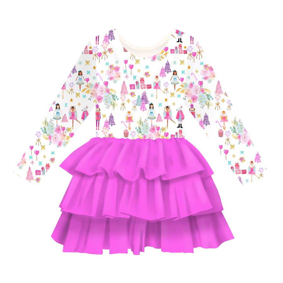 Feelin Festive Nutcracker Ballet - Girls Long Sleeve Bamboo Tiered Tulle Dress