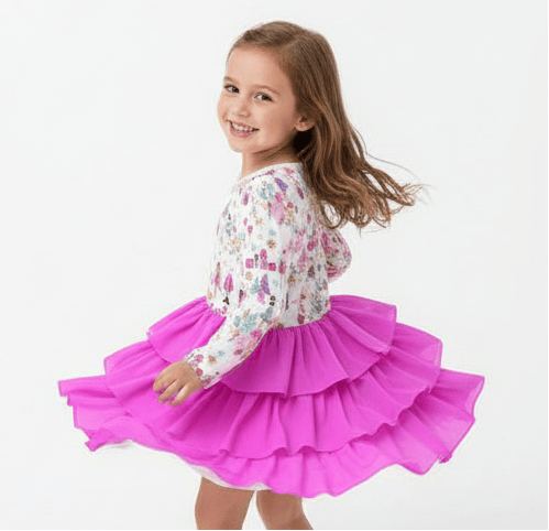 Magical Holidays Snow Sisters - Girls Long Sleeve Bamboo Tiered Tulle Dress