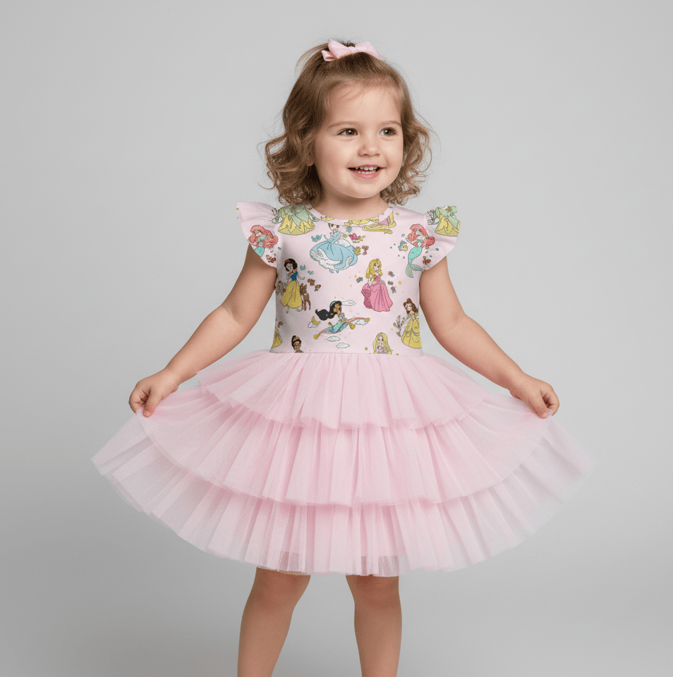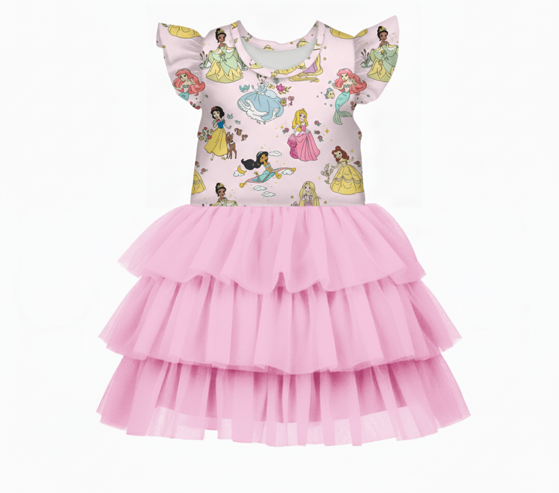 [Pre Order] Dream Big Princess Dreams - Girls Flutter Sleeve Bamboo Tiered Tulle Dress (EST SHIP LATE MARCH) *See important information in description