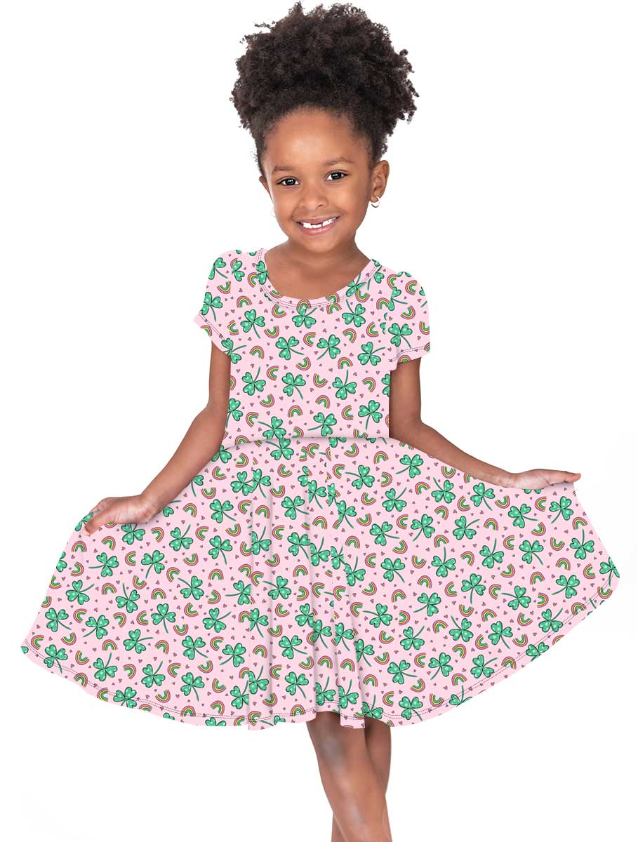 [Pre Sale] Lucky You Blush - Girls Short Sleeve Bamboo Twirl Dress (EST SHIP MID FEB)
