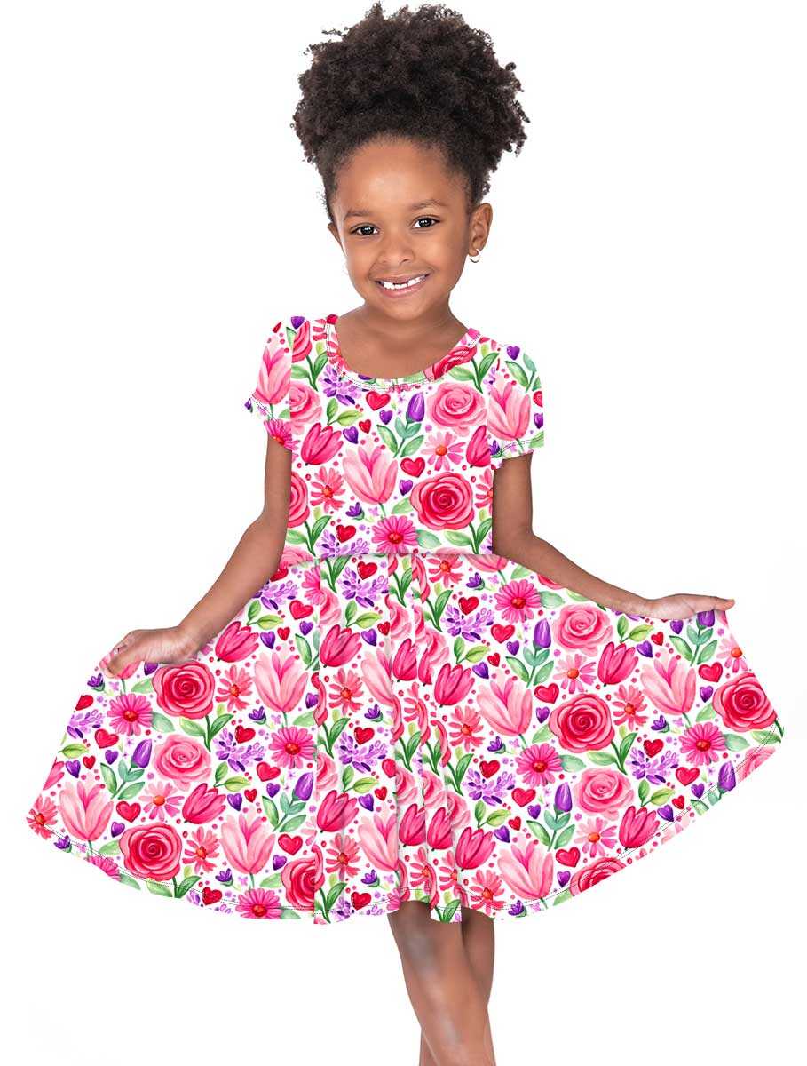 [Pre Sale] Love Bug Love in Bloom - Girls Short Sleeve Bamboo Twirl Dress (EST SHIP MID JAN)