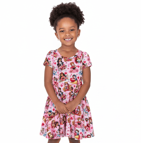 [Pre Sale] Remix Drop Amazing Friends - Girls Short Sleeve Bamboo Twirl Dress (EST SHIP LATE DEC)
