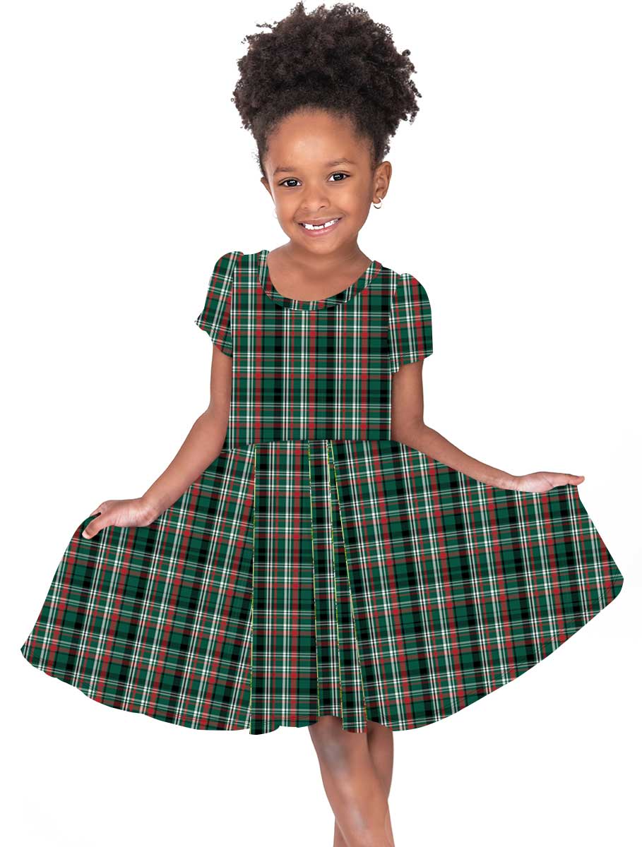 Happy Holidays Merry Tartan - Girls Short Sleeve Bamboo Twirl Dress