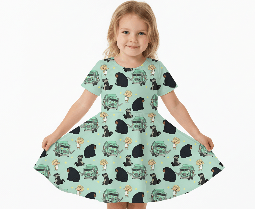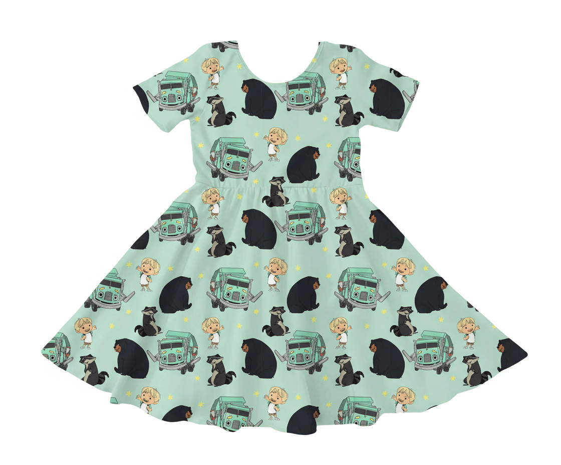 [Pre Sale] Charlie Play Truck & Friends - Bamboo Lyocell Girls Short Sleeve Twirl Dress (EST SHIP LATE MARCH)