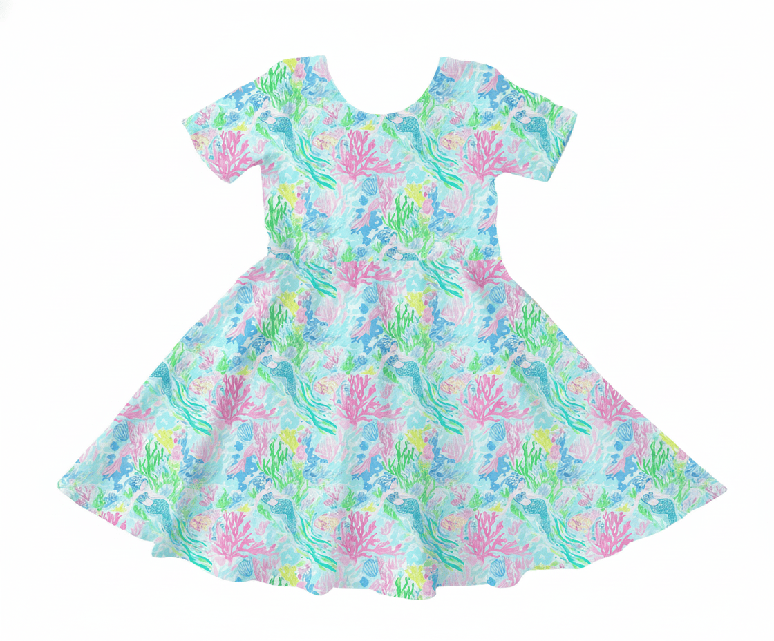 [Pre Order] Dream Big Tropical Tides - Girls Short Sleeve Bamboo Twirl Dress (EST SHIP LATE MARCH)