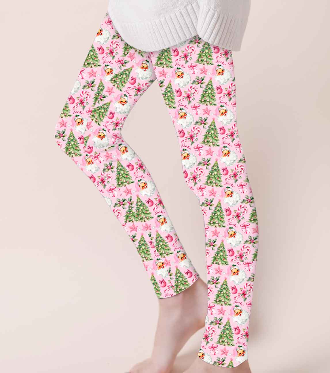 Happy Holidays Pink Noel - Adult & Kids Casual Cloud Soft Yoga Band Leggings ** Allow 7 Business Days For Orders To Ship**