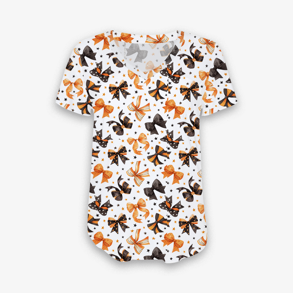 Not So Scary Boo's & Bows - Women's Bamboo V Neck Short Sleeve Top