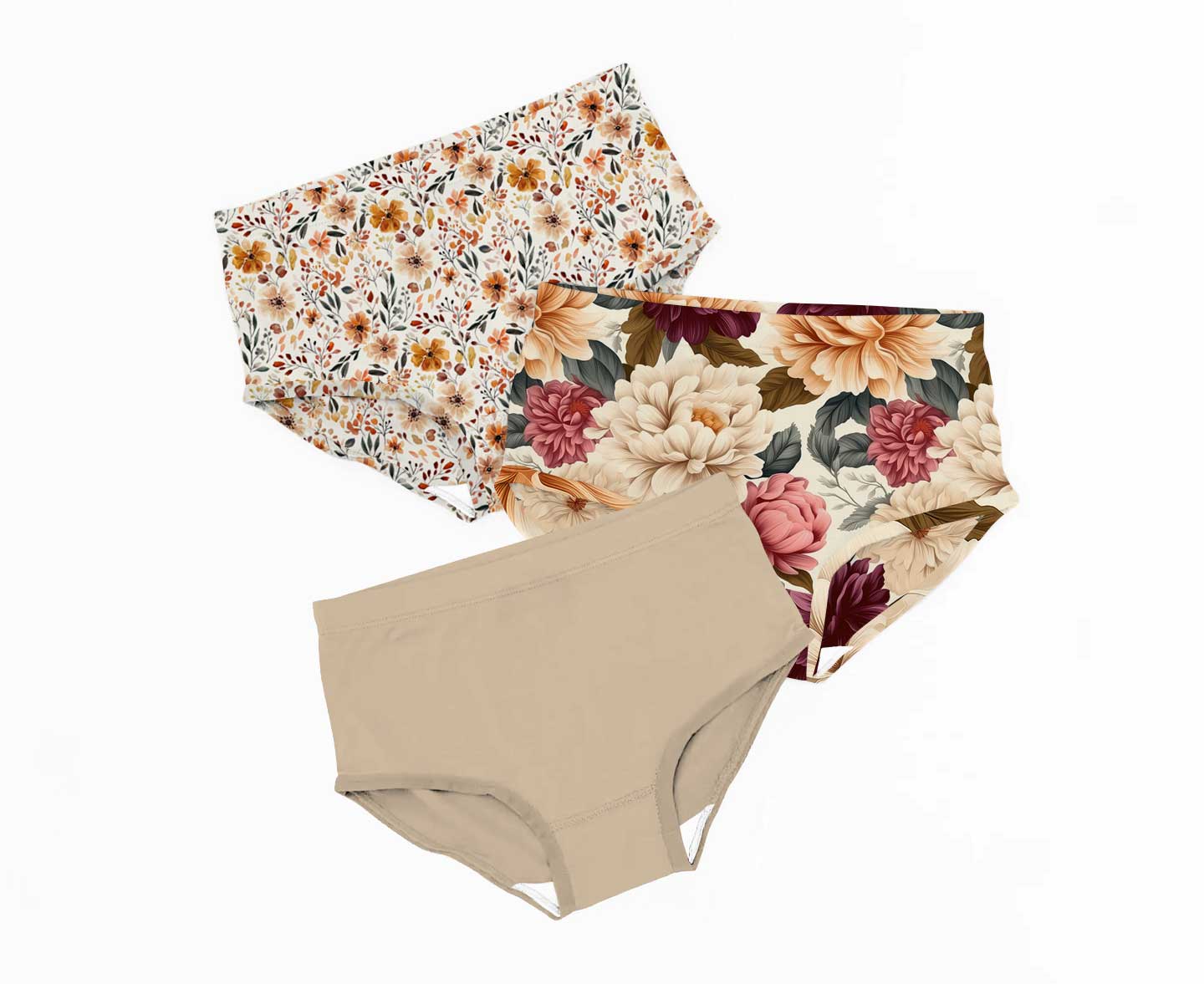 Fallin for Fall Autumn Floral - Girls Bamboo Underwear 3 Pack