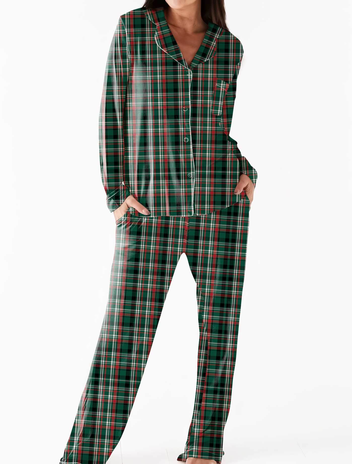 [Pre Sale] Happy Holidays Merry Tartan - Women's Bamboo Long Sleeve Lounge Set (EST SHIP MID NOV)