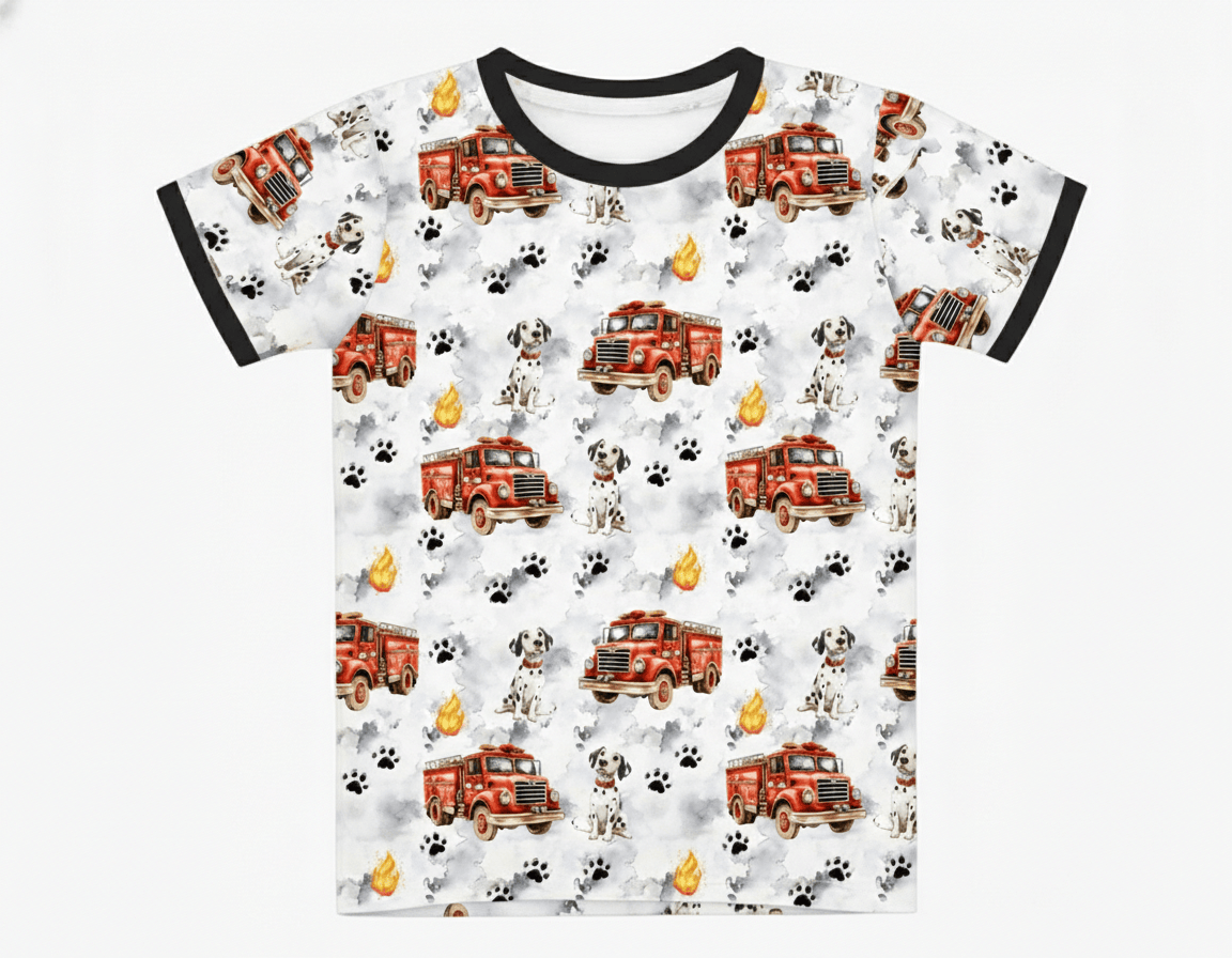 [Pre Order] Charlie Play Fire Pup - Bamboo Lyocell Kids Short Sleeve Tee (EST SHIP EARLY MARCH)