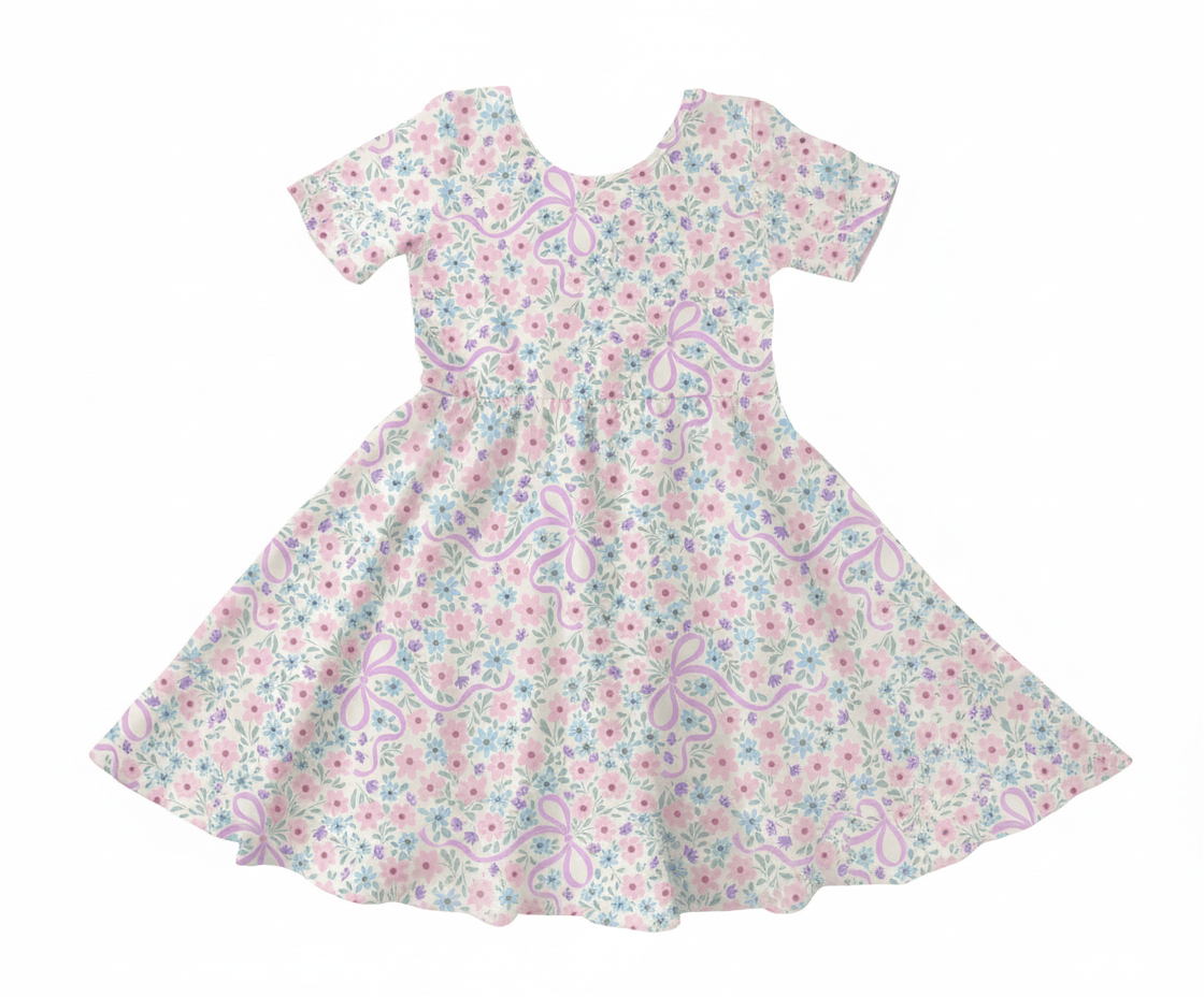 [Pre Order] Charlie Play Floral Keepsake - Bamboo Lyocell Girls Short Sleeve Twirl Dress (EST SHIP EARLY MARCH)