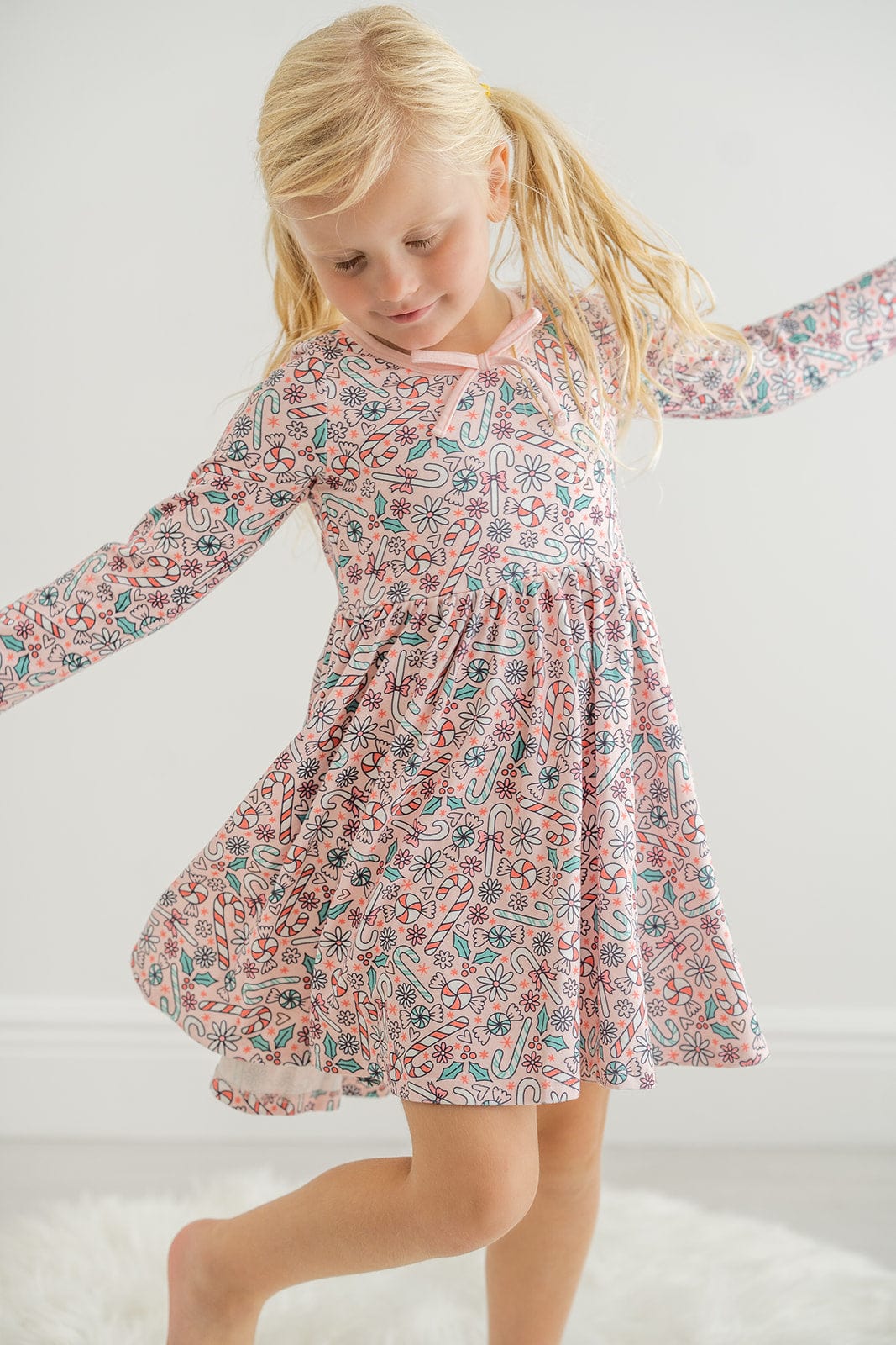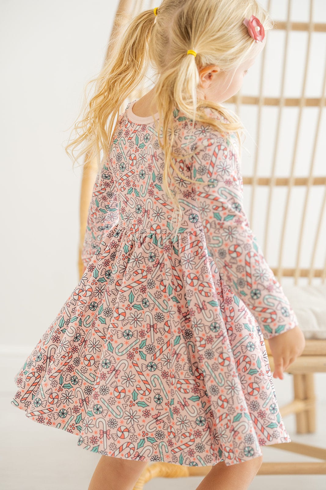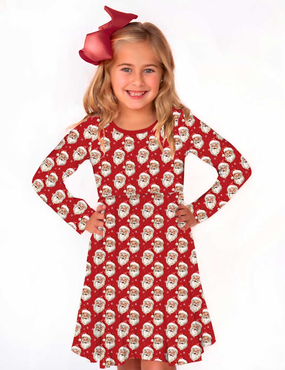 Feelin Festive Vintage Santa - Girls Long Sleeve Bamboo Twirl Dress