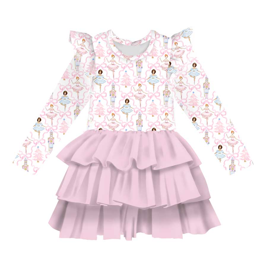 Feelin Festive Nutcracker Ballet - Girls Long Sleeve Bamboo Tiered Tulle Dress