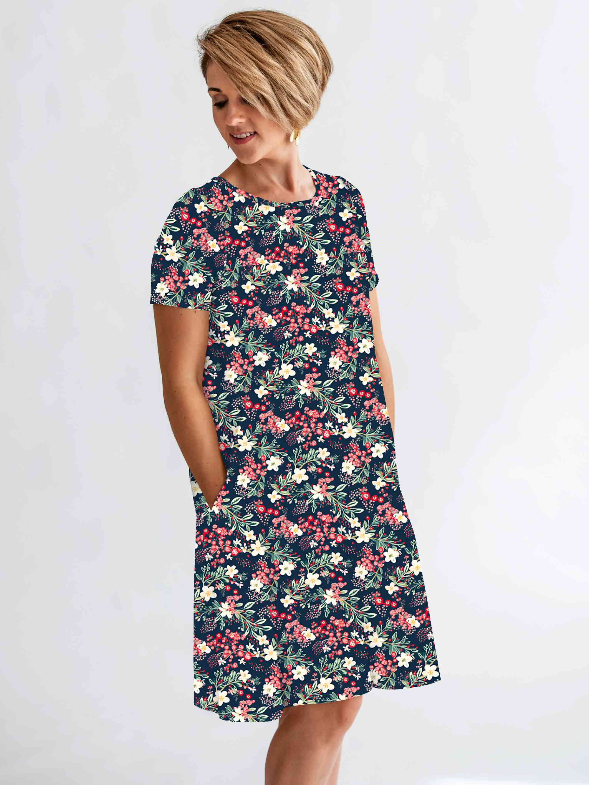 Happy Holidays Berry & Bloom - Women's Short Sleeve Cloud Soft Charley Dress