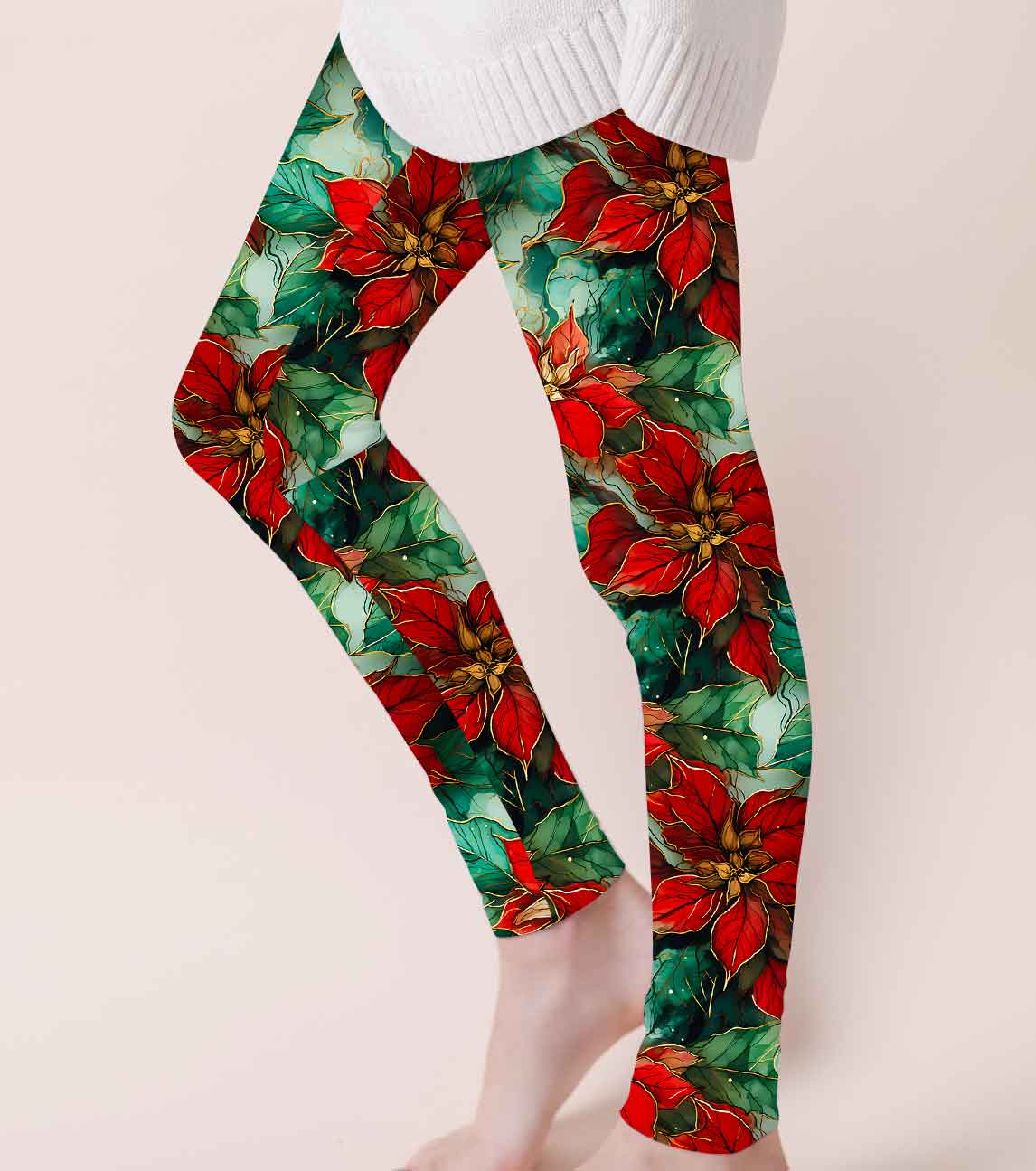 Feelin Festive Golden Poinsettia - Adult & Kids Casual Cloud Soft Yoga Band Leggings