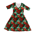 [Pre Sale] Feelin Festive Golden Poinsettia - Women's Bamboo A Line Dress (EST SHIP LATE NOV)