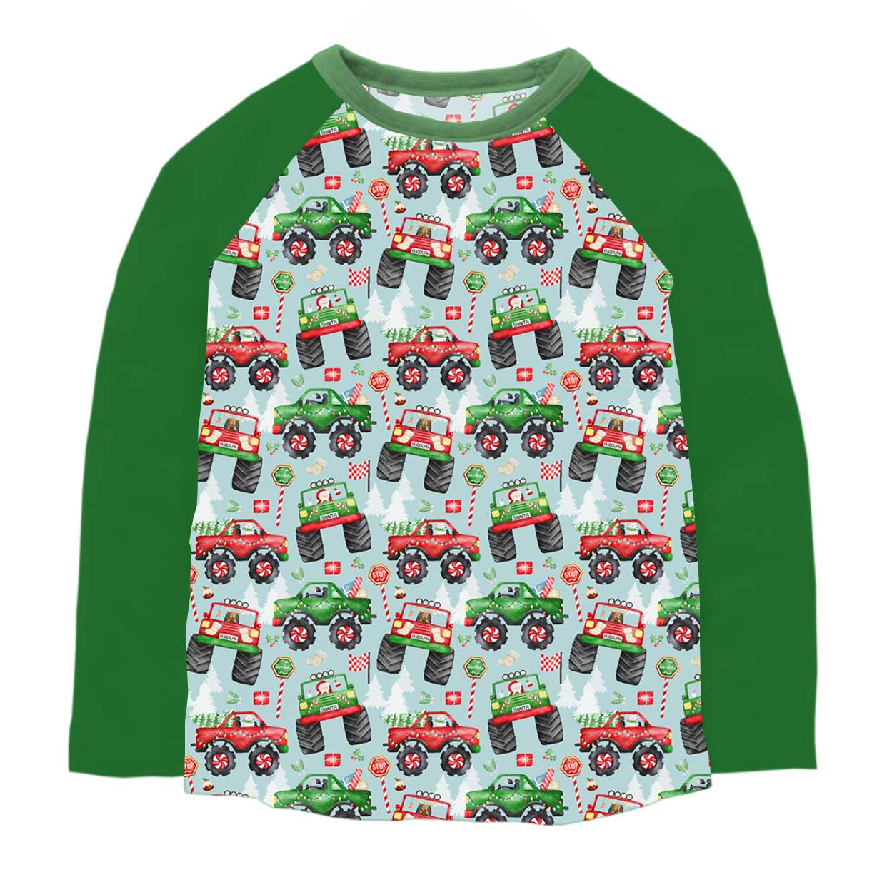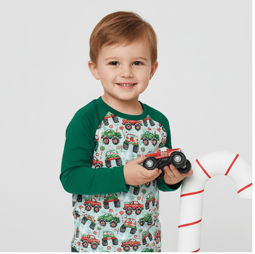 Happy Holidays Holiday Haulin' - Kids Long Sleeve Bamboo Raglan Tee ** Allow 7 Business Days For Orders To Ship**