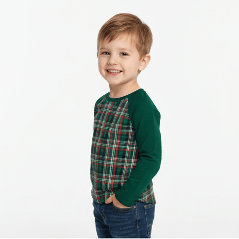Happy Holidays Merry Tartan - Kids Long Sleeve Bamboo Raglan Tee ** Allow 7 Business Days For Orders To Ship**