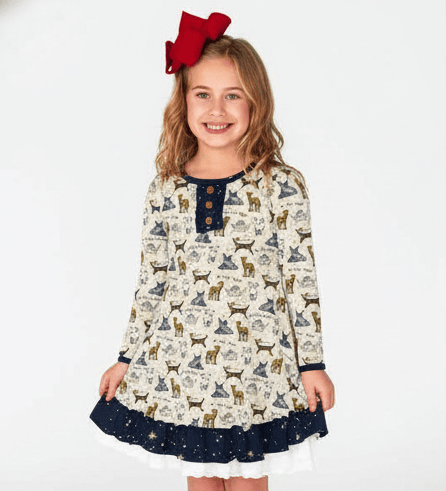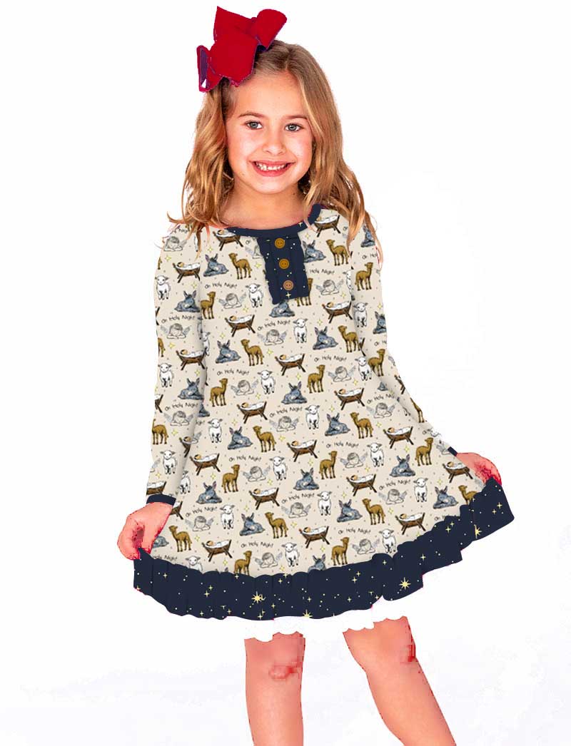 Happy Holidays Oh Holy Night - Girls Long Sleeve Bamboo Dream Set ** Allow 7 Business Days For Orders To Ship**