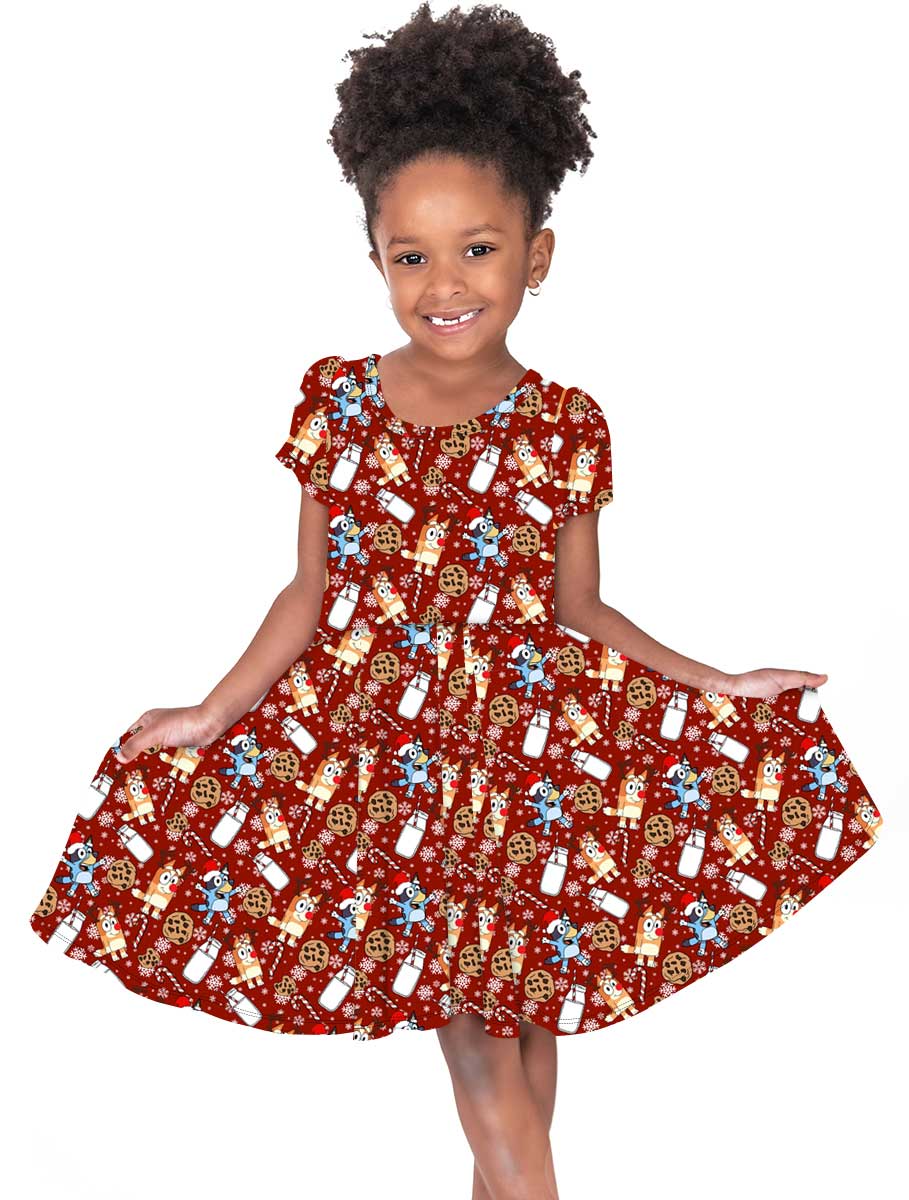 Magical Holidays Holiday Heelers - Girls Short Sleeve Bamboo Twirl Dress