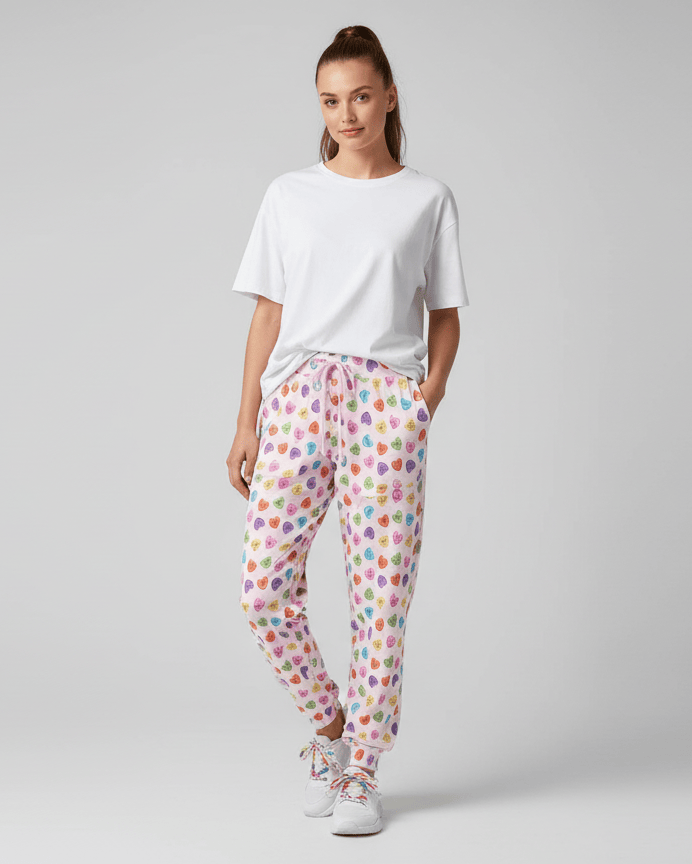 [Pre Sale] Love Bug Candy Hearts - Women's Bamboo Lounge Joggers (EST SHIP MID JAN)