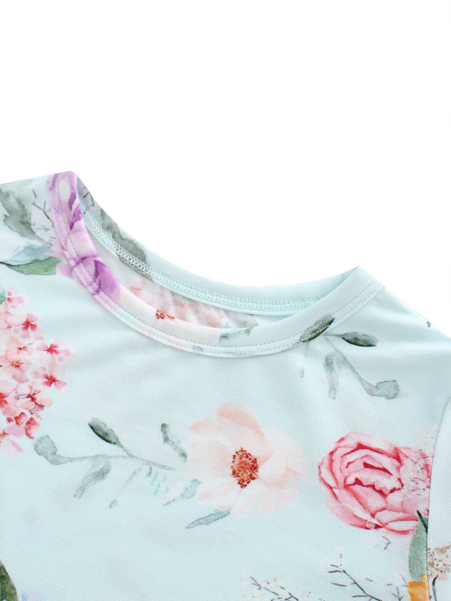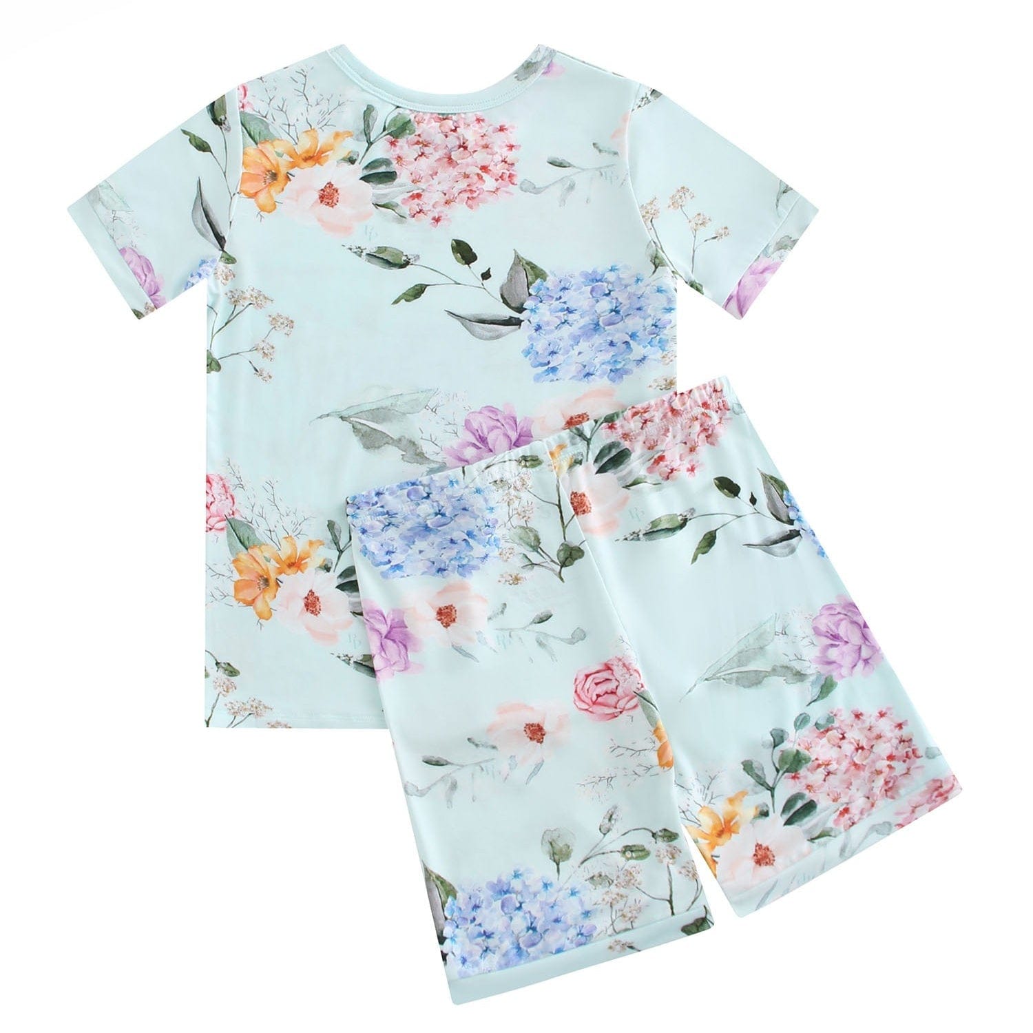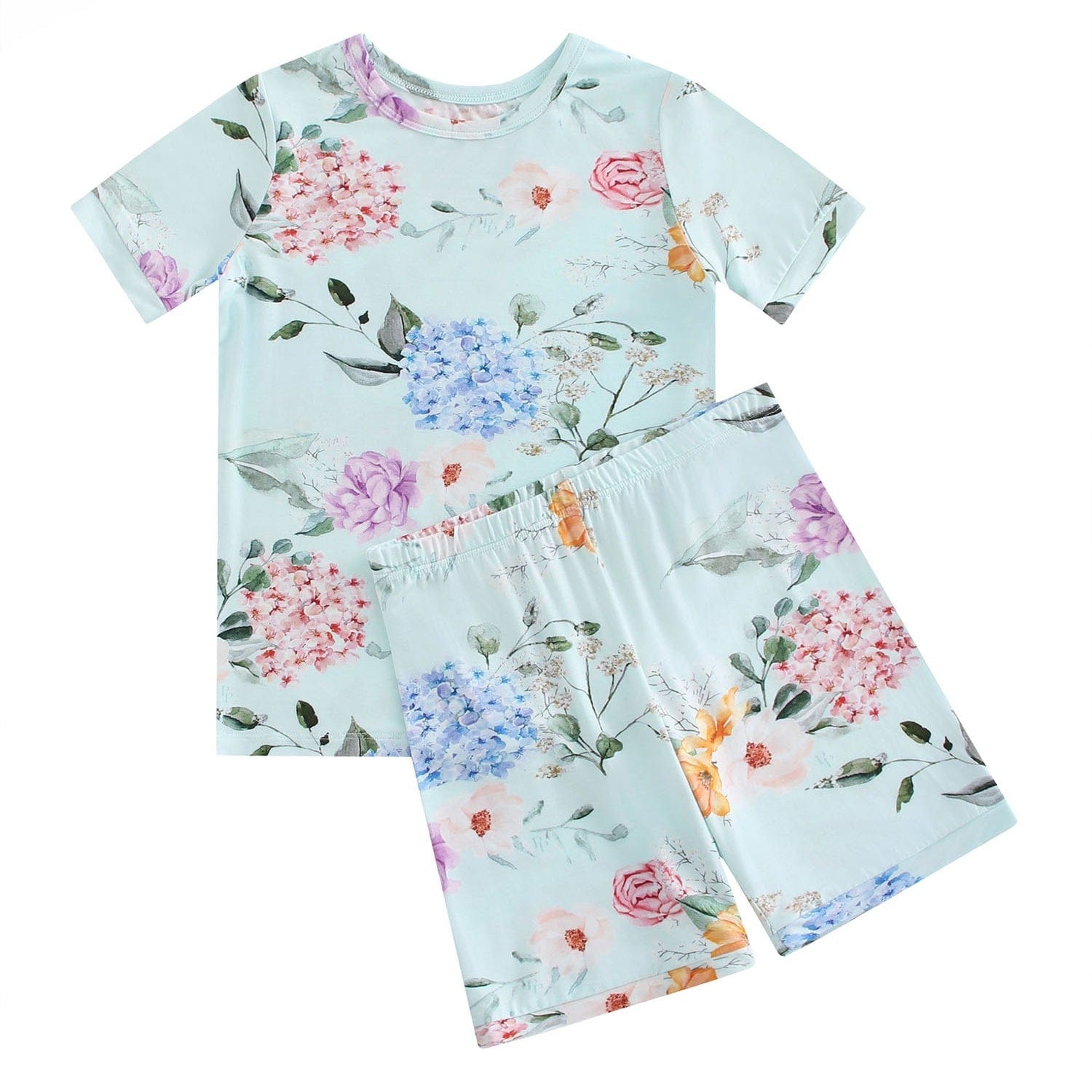 PoshTOT Green Hydrangea Print 2 Piece Short Sleeves PJ Set