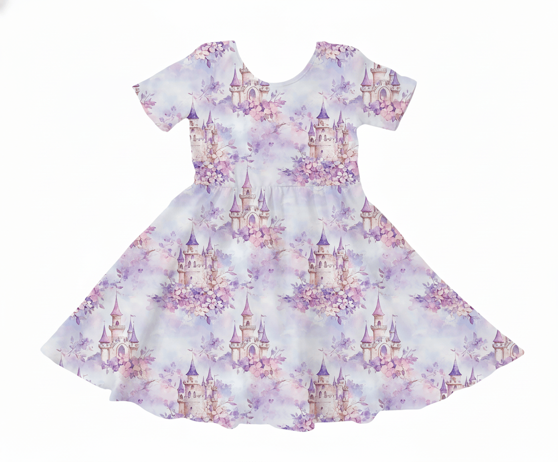 [Pre Order] Dream Big Lilac Kingdom - Girls Short Sleeve Bamboo Twirl Dress (EST SHIP LATE MARCH)